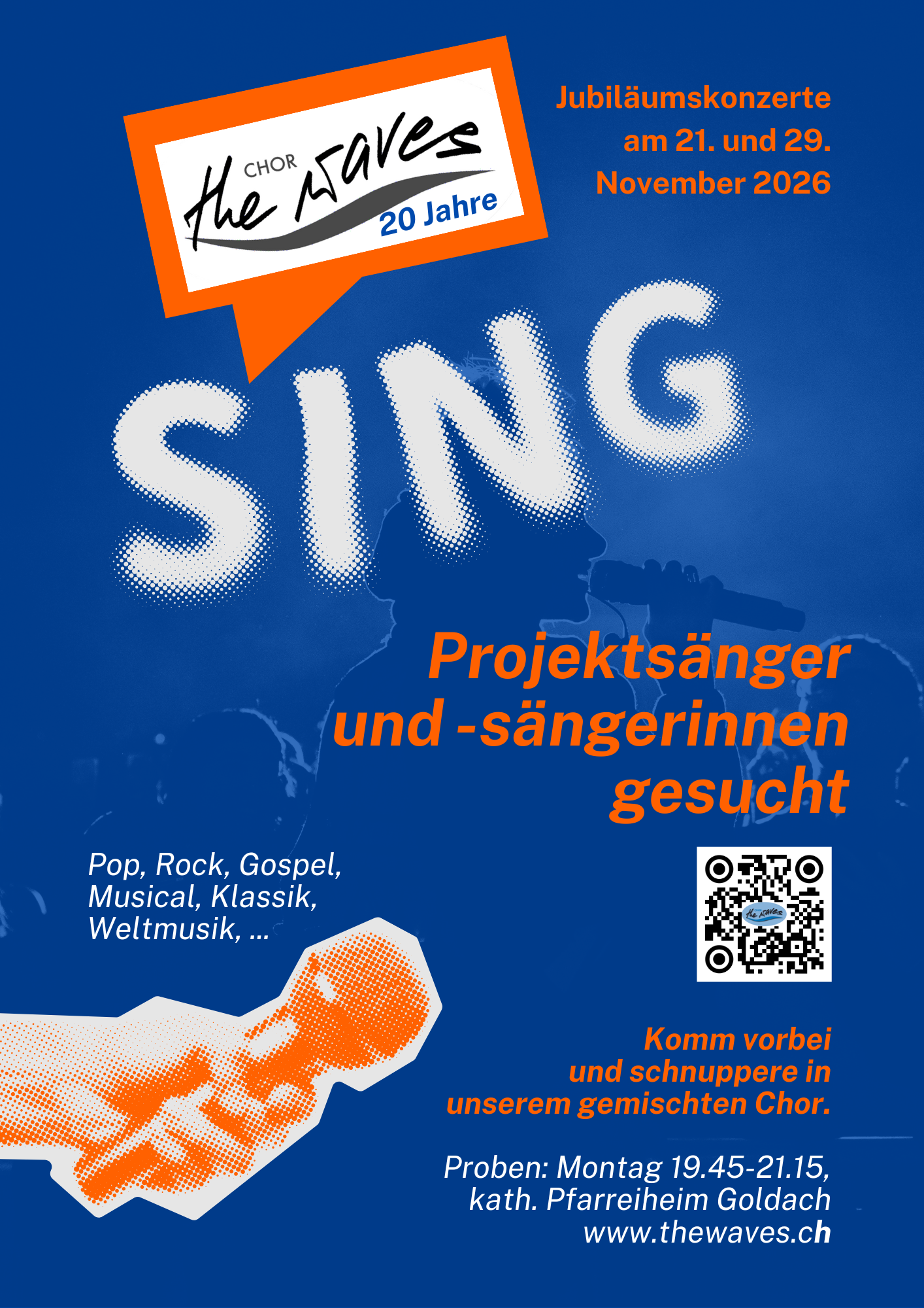 Auf was wartest du noch? Komm in unseren gemischten Chor schnuppern und finde selbst heraus, ob es dir bei «the waves» in Goldach gefällt. Fülle deine Montagabende neu mit fetzigen Rock-Pop-Songs, aufrüttelnden Gospels, schönen Liedern aus aller Welt und auch Ohrenwürmern aus der Schweiz.